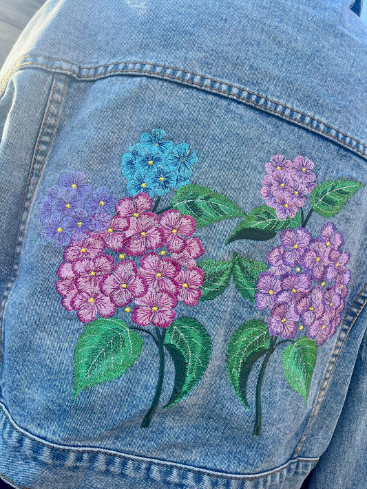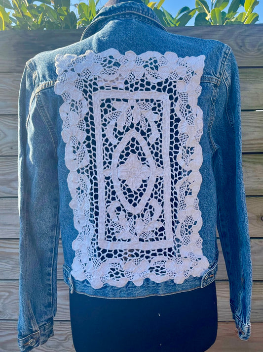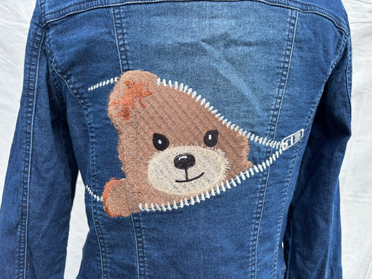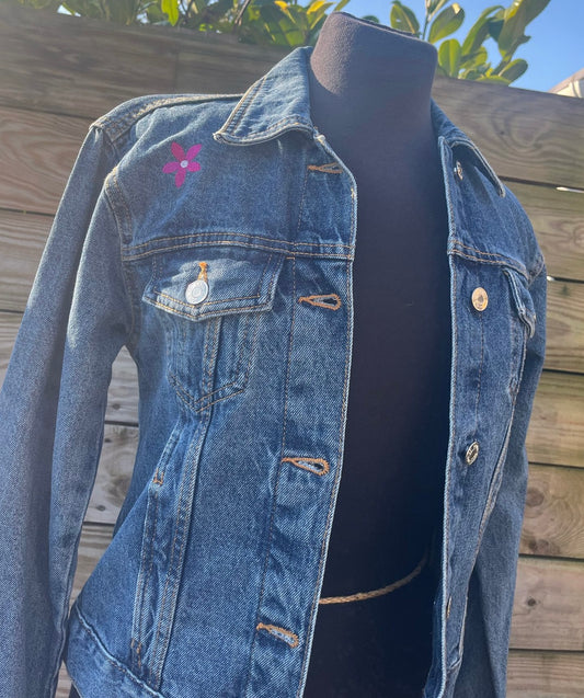 Ladies Denim Jacket Flower Bouquet tied with Ribbon
