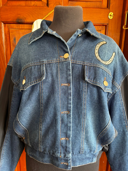 Ladies Denim Jacket Flower Bouquet tied with Ribbon