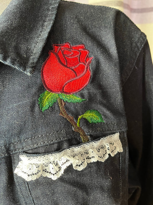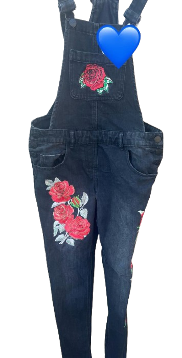 Ask about a custom jacket just for youLadies Black Denim Dungarees embroidered with Roses